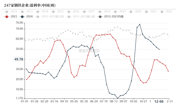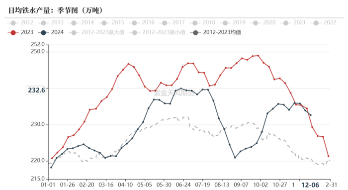 2024年1-11月铁水日均产量230万吨,同比去年-4.2%;