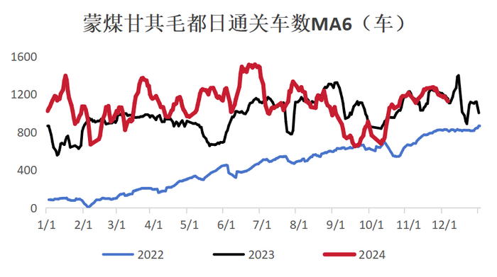 蒙煤市场全年成交偏弱,蒙5#报价由年初1600元/吨下跌至1000元/吨以下,跌幅超过600元;竞拍来看,年内曾多次出现连续流拍,且竞拍拿货多为亏损;口岸监管区库存屡创新高,压制蒙煤价格弹性;