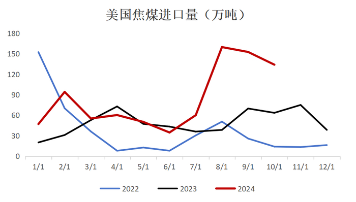 我国对美焦煤的采购主要考虑价格性价比,8-10月美煤进口利润较好,因此进口量有明显抬升,加拿大焦煤进口则相对稳定;