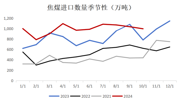 今年1-10月焦煤进口量累计达到9925万吨,同比增长23%,弥补了国产煤减量部分;