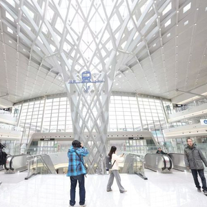 12号线装修主题为“汇影联桥”,全线通过以地域特征“桥”为符号,串联东西,同时以“桥”在材料、功能、空间上的变化进行演绎,充分体现文化缩影与国际交流的贯穿融合。作为地铁10号线、12号线和机场线三线换乘站的三元桥站,以“京桥涟影”为装修主题,进入车站仿佛穿越到了一个现代艺术空间。