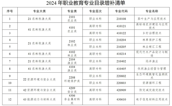 今天(12月12日),教育部更新发布了《职业教育专业目录》,共增设40个新专业,其中,中职专业3个、高职专科专业20个、职业本科专业17个,增设数量是自2021年新版《职业教育专业目录》发布以来最多的一年。