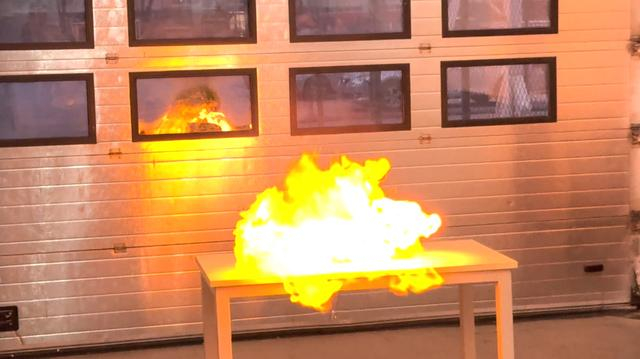 随后,消防员把锅具尺寸过大的卡式炉作为观察对象,并将其带到室内,在餐盘内放入烤肉,模拟真实用餐环境,在持续加热近半小时后,伴随着“砰”的一声巨响,卡式炉发生爆炸并燃起火焰。