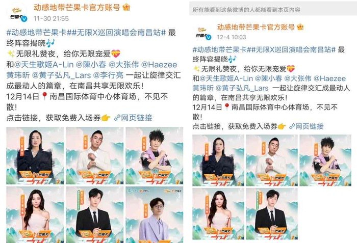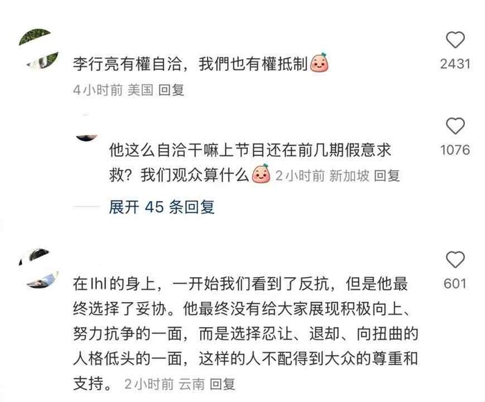 同日,芒果tv联合中国移动的另一场商演在微博官宣李行亮,在这条微博下李行亮再次遭到网友抵制。12月2日,这场江西南昌的拼盘演唱会删除了李行亮官宣照。目前,针对抵制行动,李行亮团队在接受多家媒体询问时也选择了婉拒回应。