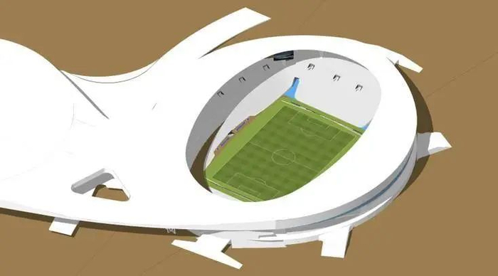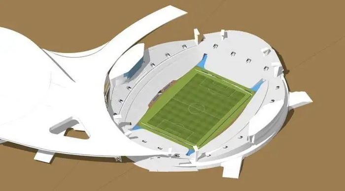 具体细节为:取消现有塑胶跑道等田径比赛设施,并根据现有看台视线条件,反向推理,将足球场地下沉4.8米;