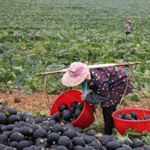 贝贝南瓜种植周期短,管理简便,平均每株能结出4至6个果实,亩产达2600斤左右。岑豆村南瓜基地负责人吴良勇介绍,最近基地收到了五个订单,总共21.6万斤,雇用了70多名工人来采收。“现在已经收了5天,预计还要收6天才可以完成这批货。”