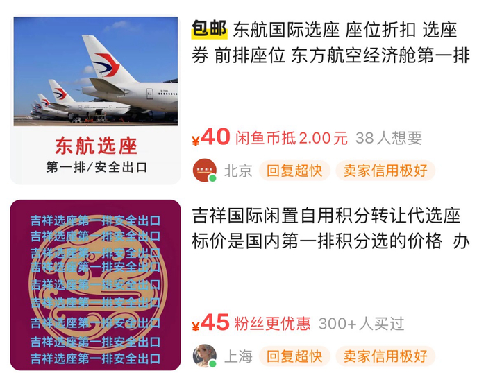 根据李某提供的线索,记者在社交平台搜索发现,确实有个别商家在出售东航、深航等航司的选座服务。
