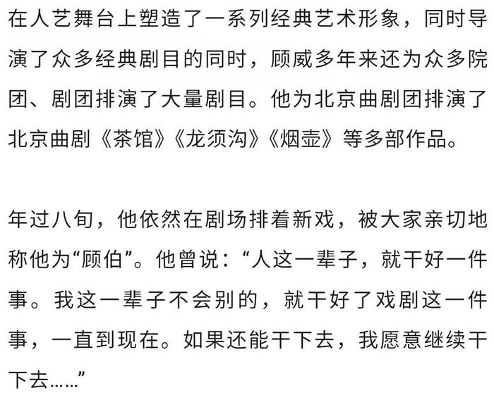 老艺术家顾威病逝,曾扮演《雷雨》中的周朴园