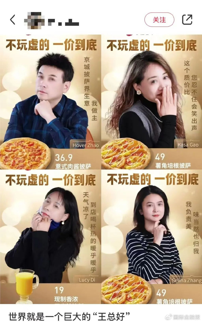 近日,有网友发文称,必胜客推出2025年新菜单,疑似用高管、员工照片制作海报进行宣传,宣传语包括“京城披萨界生意我做主”“只有老板画的饼不虚”“被工作掏空的身体很虚”等。“抽象”的海报风格与浓浓的“班味儿”让消费者感到不适,这批宣传物料很快便被下架。