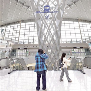 例如,工人体育场站以“体育动感 摩登韵律”为主题,通过现代感的材质和灯光线条营造时尚的空间,加强车站的动感属性和科技属性。车站艺术创作《蹴鞠图卷》,作品内容取材自中国古代蹴鞠运动,通过对国宝熊猫形象的拟人化处理,使其充满流畅跃动的灵性。