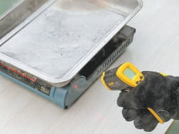 实验中,消防员在室外场所准备了两个卡式炉,其中一个锅具尺寸合适,另外一个锅具尺寸过大。点火5分钟后,消防员用测温枪测试发现,两个炉具气瓶仓的温度相差不大,一个51摄氏度,一个62摄氏度。然而,点火15分钟后,前者的温度稳定,变化不大,后者因为锅具过大,气瓶附近的温度持续上升,最高时达到99摄氏度。