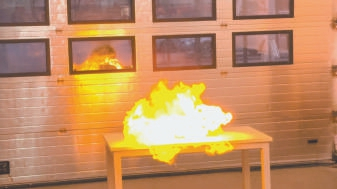 随后,消防员把锅具尺寸过大的卡式炉作为观察对象,并将其带到室内,在餐盘内放入烤肉,模拟真实用餐环境,在持续加热近半小时后,随着“砰”的一声巨响,卡式炉发生爆炸并燃起火焰。