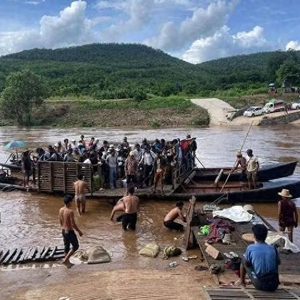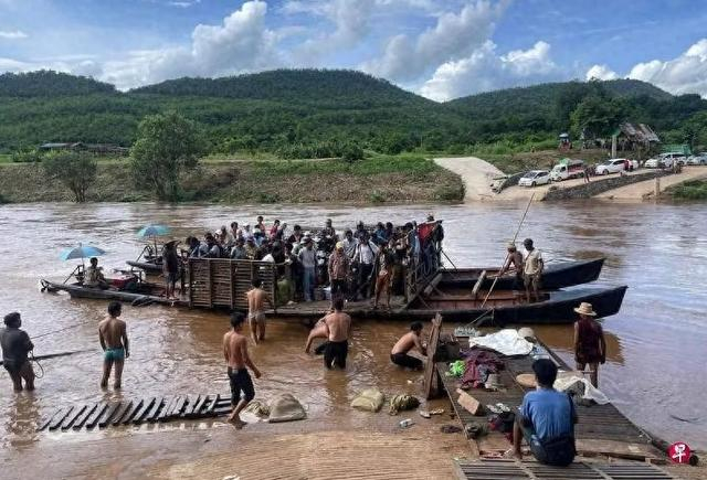 7月8日,缅北民地武德昂民族解放武装和缅甸军方发生冲突后,来自东北部最大城镇腊戍(Lashio)的居民乘船逃离家园。 法新社