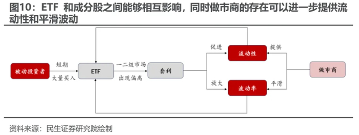 综合来看,ETF参与者结构与ETF跟踪指数对应的成分股的参与者之间可能存在明显差异,这在一定程度上可能带来ETF市场与A股市场定价效率的差异,而ETF做市商与一二价差的套利者是联接两个市场的重要桥梁。