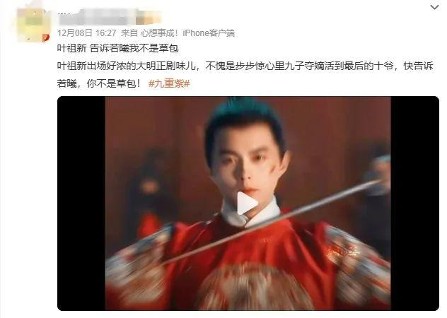 近日,古装剧《九重紫》热播,演员叶祖新在剧中扮演“太子”,开头几分钟火速下线。