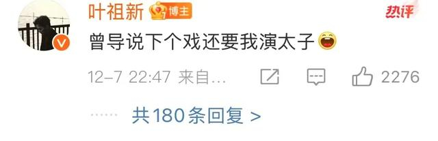 在留言区,他开心地表示,导演说下个戏还要他演太子。