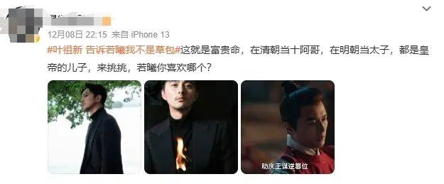 这次因“有效三分钟出场”爆火之后,社交平台上,网友回忆起叶祖新早年出演的电视剧《步步惊心》,并喊话若曦“我不是草包”。