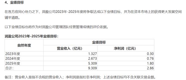 公司还对均瑶润盈设定了经营目标,2023年至2025年,各期营收目标为:1.33亿元、2.67亿元、5.31亿元,各期对应的净利润分别为:0.3亿元、0.76亿元和1.8亿元。