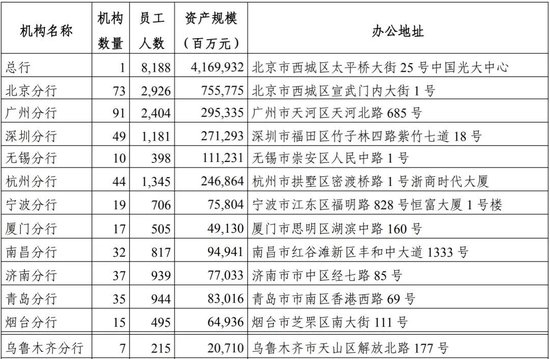 光大银行上述一级分行信息(来自2024半年报)