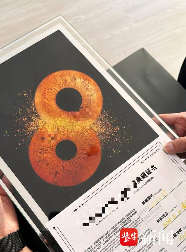 “拍摄很快,几分钟就好了,主要是摄影师需要调整参数,以确保能够清晰地拍摄出眼球中的沟沟壑壑。”冷布丁告诉记者,拍摄虹膜写真时,需要将下巴搭在特定的设备上,保持眼睛静止不动。摄影师会利用专业的相机和光源,捕捉眼球中的细节。“我们俩依次拍完,摄影师再把我们俩的照片合成在一张照片上。看到成片我才发现尽管都是黄褐色的眼珠,纹路也不一样,对比放在一起就能看出差异,真的是五彩斑斓的黄。”