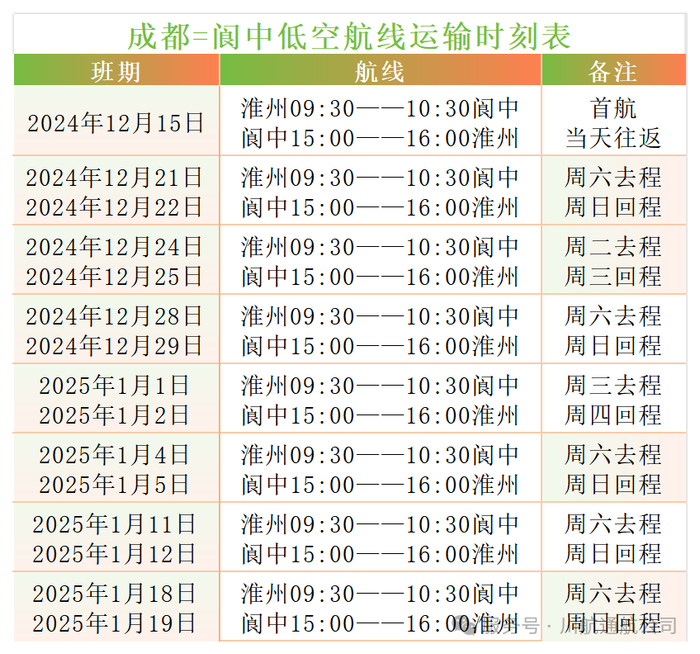 据了解,目前,成都至阆中暂无民航运输航线,现有高铁及城际列车每日约5班(通达时间约2.5小时)。本条“空中快线”航线距离约193公里,开通后,飞行时间仅约1小时,将大大节省出行时间。
