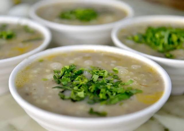 当然,南方同样也有汤羹作早餐的习惯。比如江苏北部的“饣它汤”,饣它音同“啥”,鸡汤打底、麦片增稠;