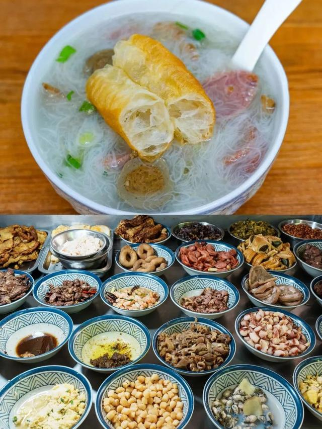 泉州面线糊,用外面很少能买到的细面线和番薯粉制成的,拥有二三十种配菜;
