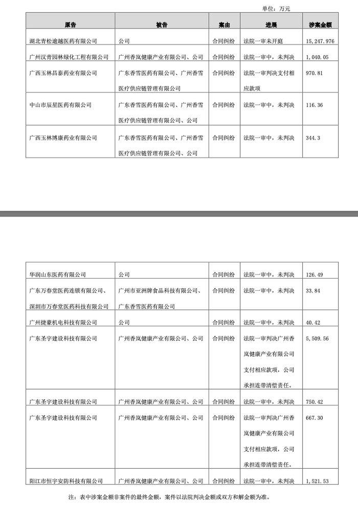 香雪制药:公司累计涉诉涉案金额2.64亿元 占净资产13.7%