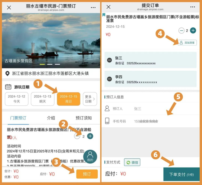 古堰画乡:预约成功后,游玩当天凭本人身份证+0元购预约二维码检票入园,未携带身份证者无法入园,逾期作废。(P.S.人证比对,无身份证的儿童凭户口本)