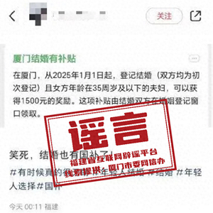 在厦门结婚能领1500元补贴?官方回应!