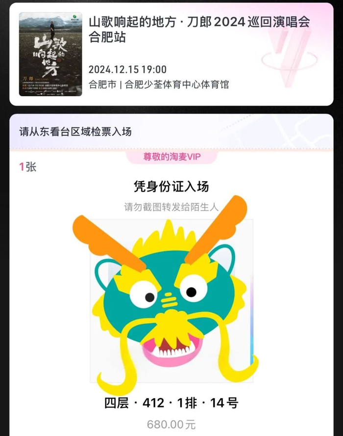 “爸爸一直对刀郎的歌感兴趣,这半年刀郎各个城市开演唱会,他便掩不住想去看的心。本来南京场是第一选择,但因为那个周末有事,最后决定冲一冲合肥场。”小瑜讲述自己为老爸抢票的经历。
