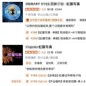 近日,“虹膜写真”在年轻人中间走红。搜索探店分享平台,上海就有多家体验门店。团购套餐显示,可拍摄单瞳、双瞳、情侣/闺蜜、全家福,价位不等↓↓