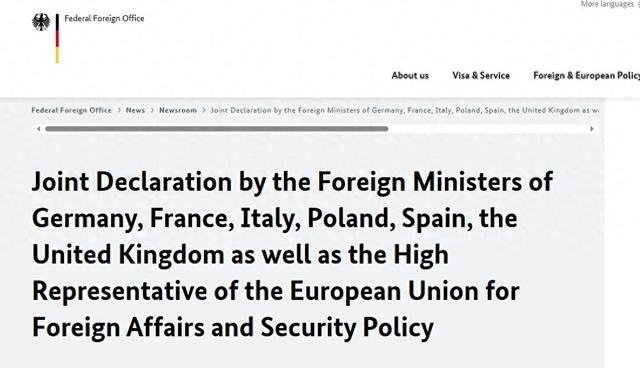 在德国首都柏林,英国、法国、西班牙、德国、意大利和波兰的外交部长于周四与乌克兰外交部长举行了会晤,并共同签署了一份宣言。