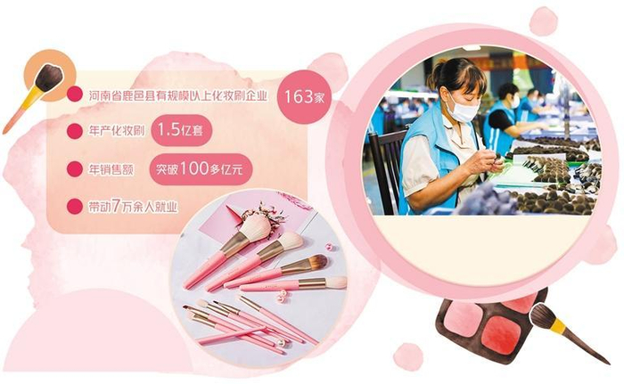 如今,鹿邑县每年接待中外游客超千万人次,很多游客在返程时都会带一把化妆刷。凭借一把化妆刷,鹿邑已成为拥有百亿元级特色产业集群的产业之都。