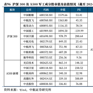 2、塑权重:沪深300和A500等指数中的军工权重股;