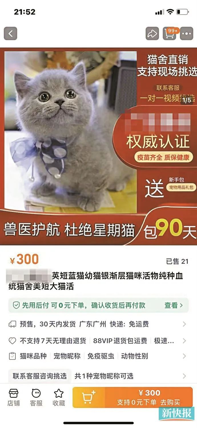 为了进一步了解宠物网上销售的门道,新快报记者在某网络平台挑选了几个商家进行了解。