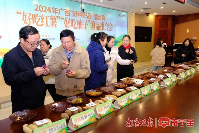 12月13日,2024年广西“好种好品”擂台赛“好吃柚子”“好吃红薯”鉴品推介会在南宁召开。组委会在全区征集20个柚子品种、48个红薯品种参赛。经过11月26日、12月5日的组织评比,评出“好吃柚子”金奖4个、银奖6个;“好吃红薯”金奖10个、银奖11个。