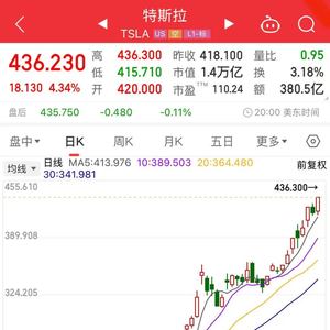 特斯拉股价上涨4.34%,报436.23美元/股,再创历史新高。自11月5日总统选举日以来,特斯拉股价累计涨幅逼近80%。据悉,马斯克将与维韦克·拉马斯瓦米(Vivek Ramaswamy)一起领导特朗普政府的“政府效率部”。马斯克曾在10月份的特斯拉财报电话会议上表示,他打算利用自己对特朗普的影响力,建立一个“自动驾驶汽车的联邦审批程序”。