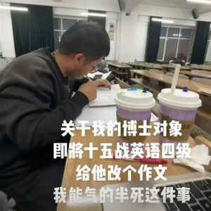 王同学发布的视频显示,男友正在教室里伏案复习英语。她感慨:“我的博士对象,即将十五战英语四级,给他改个作文,能气得半死。带不动,真的带不动。”短短几天时间,王同学的这条视频,引来47.5万点赞,4.6万条留言和44.3万次转发。