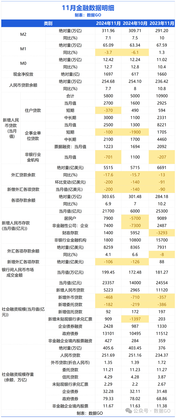 表:11月金融数据明细 制表:数据GO