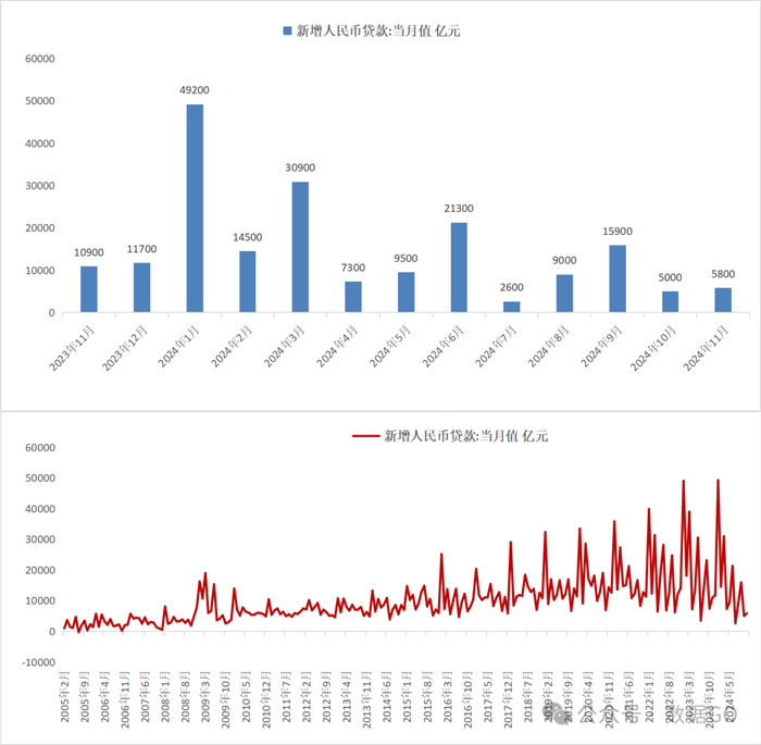 11月新增人民币贷款5800亿元,环比多增800亿元