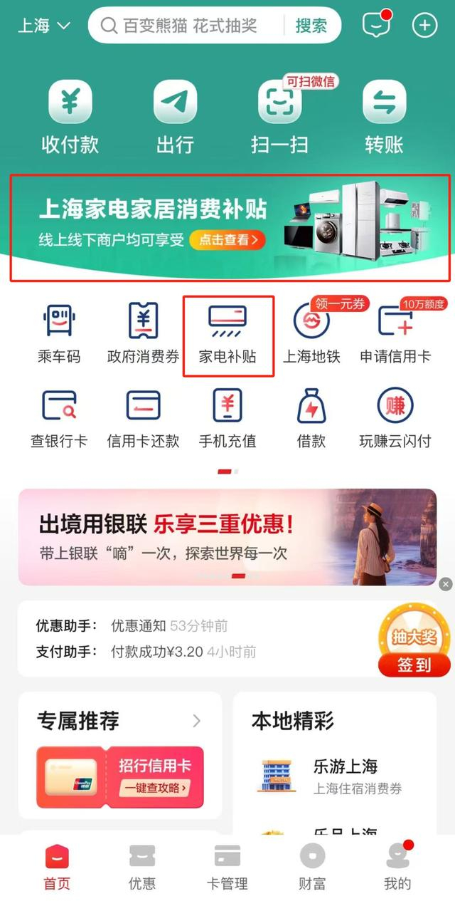 登陆交通银行APP、浦发银行APP、浦大喜奔APP、上海银行APP、上银美好生活APP、上海农商银行APP,在政策实施专区页面也可领取对应品类券。