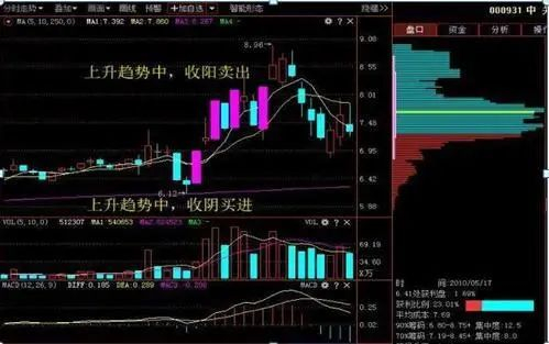 这一口诀与第一诀有点类似,就是讲逆市而动的道理,第一诀是说短线的,第二诀是说中线的。即,买时,选择K线收阴线时买;卖时,选择K线收阳线时卖。