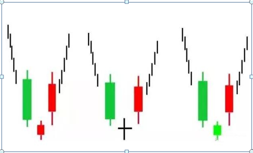 两阳夹一阴既是上涨中继信号,也是底部反转信号,技术特征主要有3点:1)它是由三根K线组合而成;2)第一天收出一个大阳线或中阳线,第二天下行收出一根实体与第一天差不多的阴线,第三天收出一根大阳线或中阳线,实现技术反包;3)两阳夹一阴存在技术变形,强势程度也不相同,如下图所示。