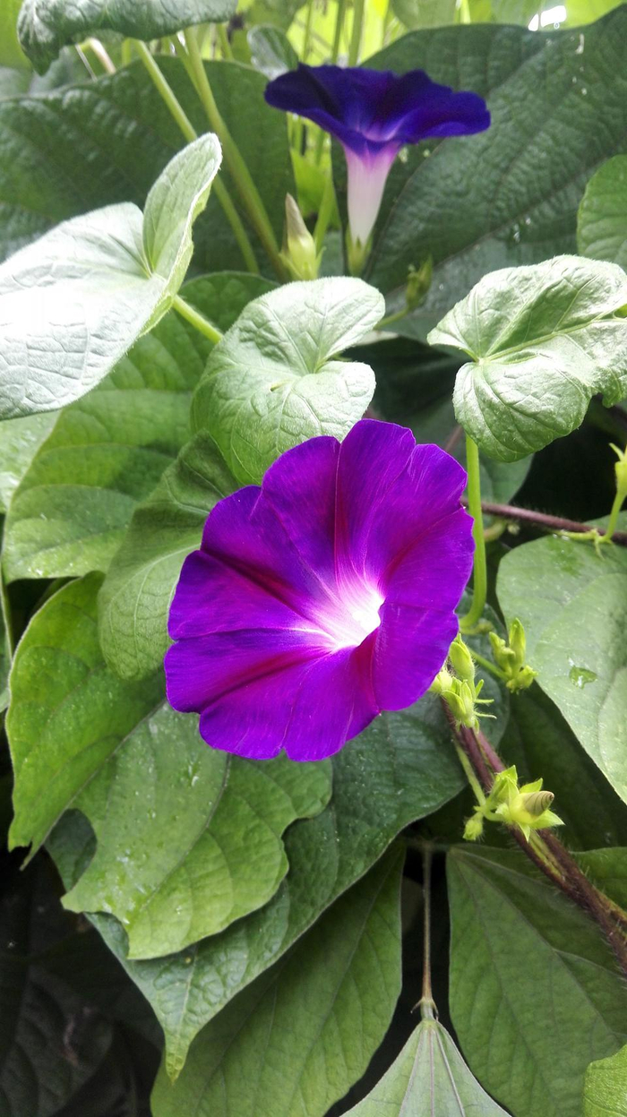 圆叶牵牛茎枝表面有毛,具有极强的缠绕性和延展性,这使它们既能够匍匐生长,也能够攀缘而上,生命力极强。