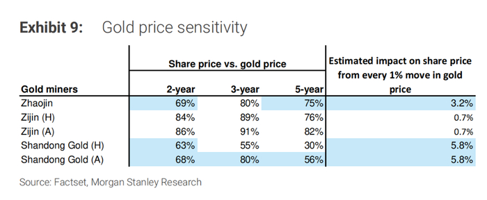 “我们预计,随着金价上涨,中国黄金矿业公司的利润将大幅增长。以招金、山东黄金和紫金为例,金价每上涨1%,它们的净利润有望提升0.7%到2.8%。”