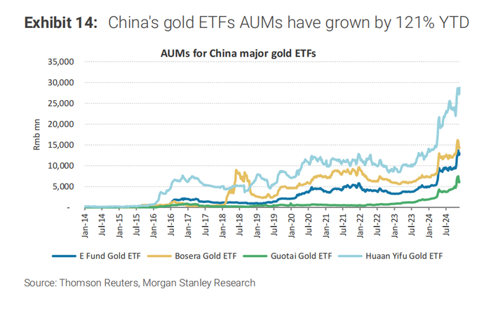大摩指出,地缘政治风险加剧的背景下,中国黄金将从市场避险情绪中获益,并受中国投资者追捧。人民币波动预期也为金价上涨提供了支撑。