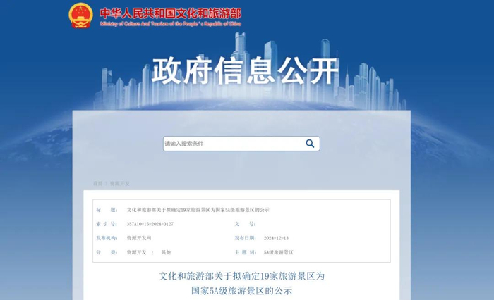 文化和旅游部发布公示
