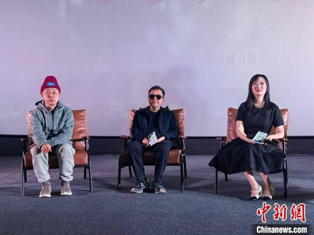12月14日,导演贾樟柯(中)与电影《风流一代》主演李竺斌(左)、赵涛(右)现身电影告别放映活动。胡健 摄