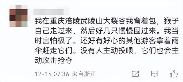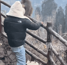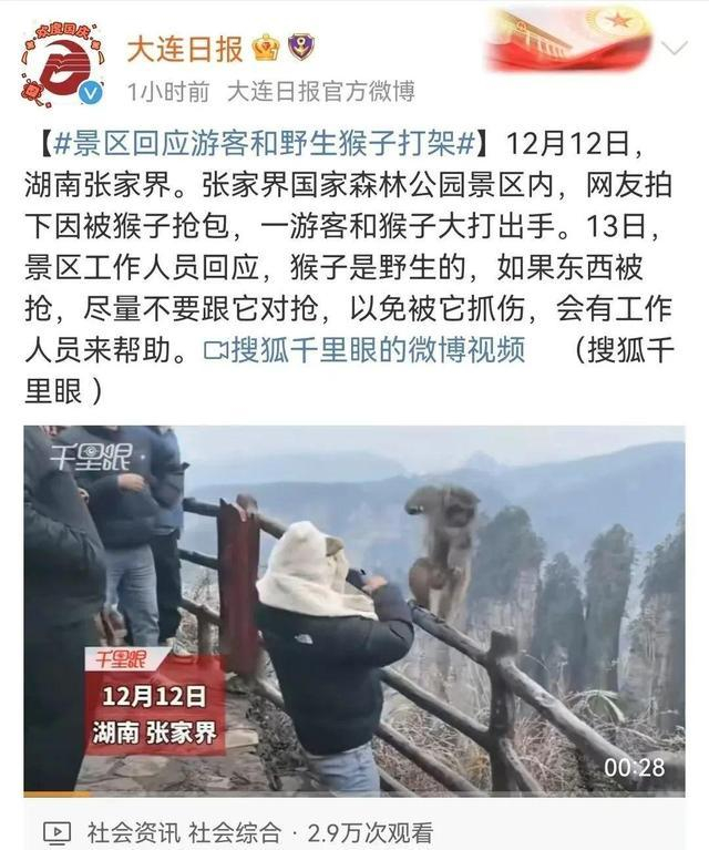 13日,景区工作人员回应,猴子是野生的,如果东西被抢,尽量不要跟它对抢,以免被它抓伤,会有工作人员来帮助。